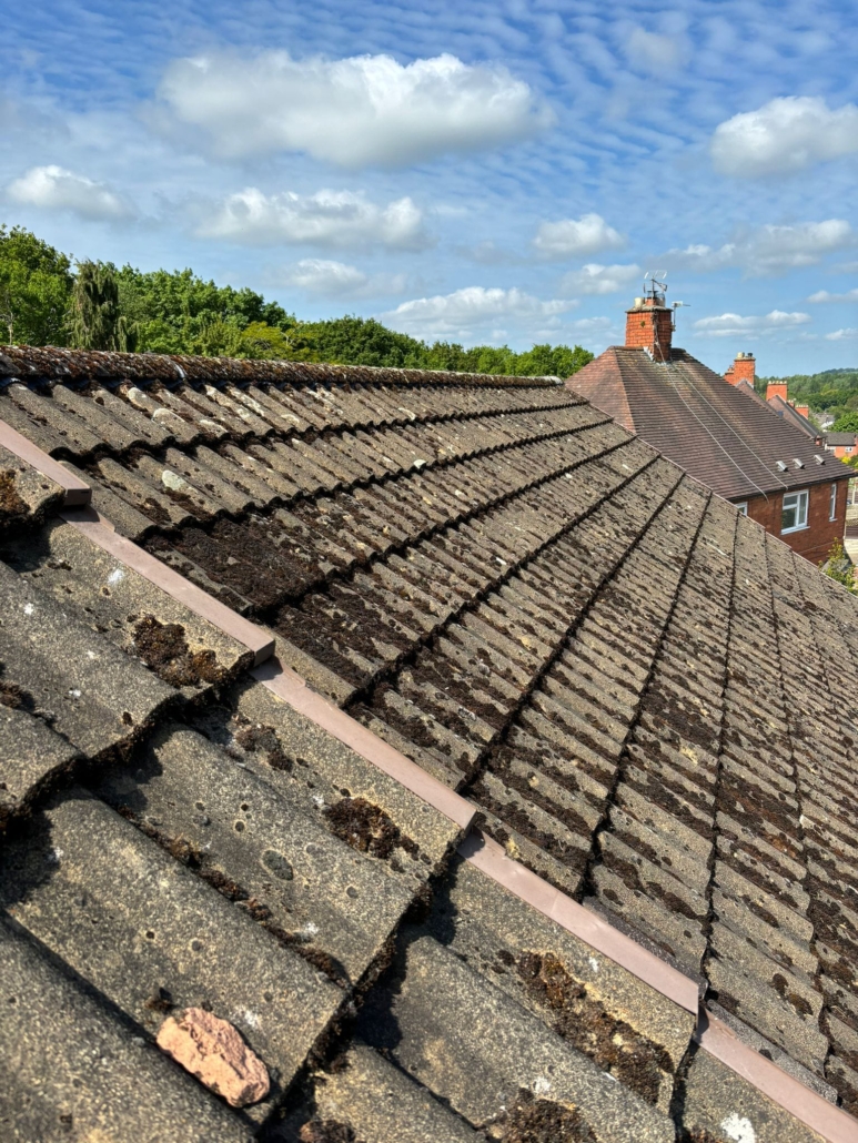 At Kingsway Roofing, we recently repaired and installed a new dry ridge system on a roof in Stafford, providing a modern, maintenance-free upgrade. We began by removing the old ridge tiles and clearing away any damaged mortar before fitting a secure, ventilated dry ridge system. This method offers long-term protection against weather damage and eliminates the need for future repointing.